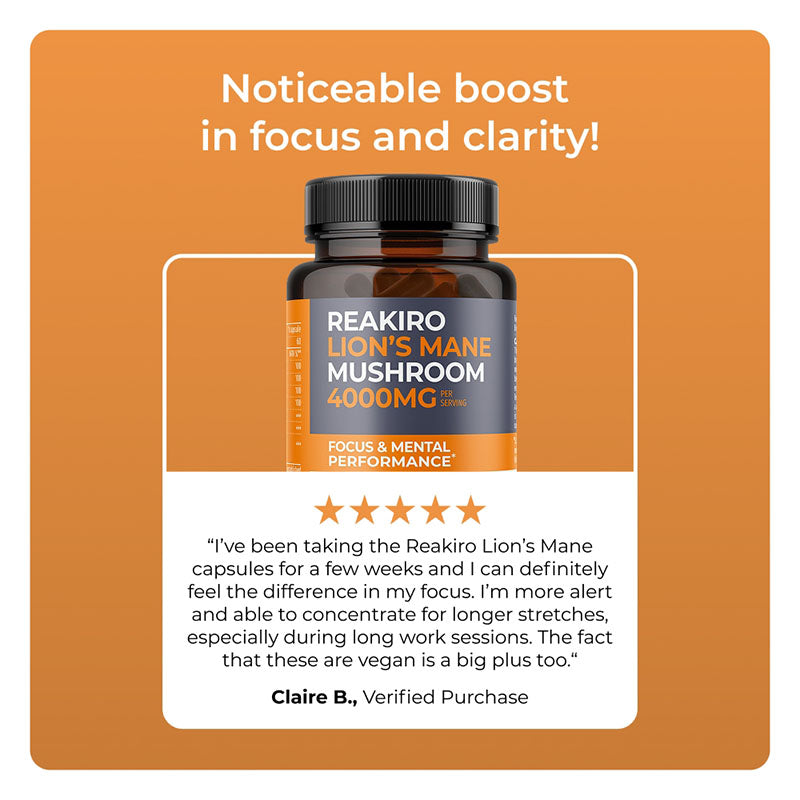 Daily Support for Mental Performance & Clarity with Reakiro Lion’s Mane Mushroom Capsules